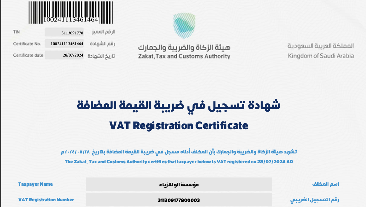 VAT Registration Certificate